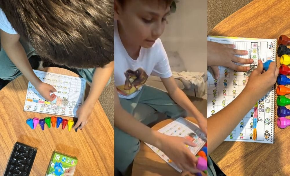 Eu imprimi o calendário e ele pintou todinho, andava com o ele pra cima e pra baixo. E pedia pra eu fazer vídeos dele explicando como usava o calendário. Explicações estão nos destaques ‘calendário’ do meu insta.